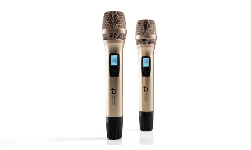 Bộ sản phẩm còn có 2 tay micro không dây dBacoustic nhỏ gọn, làm bằng hợp kim phủ nano chống trầy xước, chống bám vân, tạo cảm giác thoải mái cho người dùng khi cầm nắm. Trên thân micro không dây này cũng được trang bị 1 màn hình LCD nhỏ hiển thị tần số, dung lượng pin và 1 nút nguồn mềm, rất dễ thao tác.