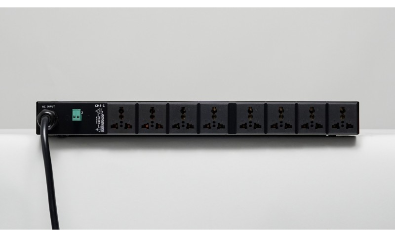 Mặt sau là hệ thống cổng kết nối, đường vào nguồn điện được kí hiệu từ CH8-CH1. Các jack cắm, đầu kết nối điện được thiết kế tiêu chuẩn, bảo vệ mạch điện đảm bảo an toàn. Ổ cắm tiêu chuẩn EIA (tương thích với mọi ổ cắm điện)