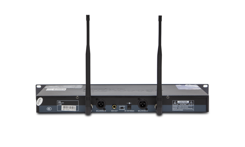 Đầu thu micro được làm từ nhôm cao cấp, với màn hình LCD sắc nét và các nút chỉnh âm lượng riêng biệt cho từng tay mic. Ăng-ten phía sau tăng khả năng thu sóng ổn định trong không gian rộng.